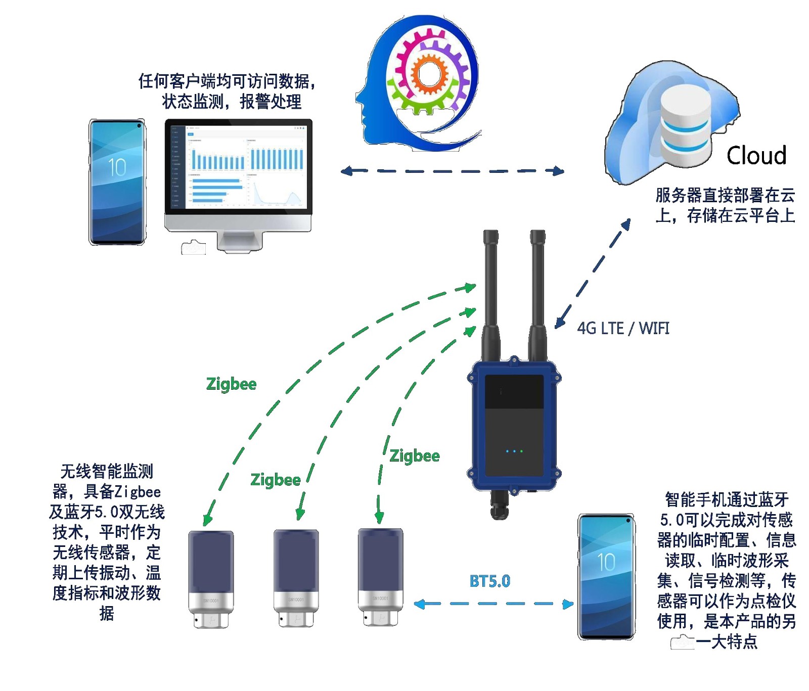 l 雙無線感知架構;一台網關可管理和(hé)交互多達45個無線溫振傳感器;